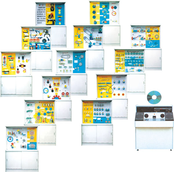 《機(jī)械設(shè)計(jì)基礎(chǔ)》示教陳列柜是根據(jù)教育部高職高專規(guī)劃教材設(shè)計(jì)的電化教學(xué)設(shè)備。本陳列柜共分十三個(gè)柜和一個(gè)電腦控制臺,并配有一臺功率放大器,VCD機(jī)和激光片,聲控同步演示,采用單獨(dú)驅(qū)動(dòng)由電子設(shè)備控制演示,可由VCD控制順序自動(dòng)運(yùn)行講解;又能根據(jù)教材,教學(xué)需要而遙控任意選擇進(jìn)行單獨(dú)演示。模型材料采用進(jìn)口有機(jī)板和硬聚氯;板面附有必要的圖表和文字說明,演示形象逼真,運(yùn)行可靠,制作工藝美觀,使用本陳列柜可提高教學(xué)效果,節(jié)約學(xué)時(shí),是一套現(xiàn)代機(jī)化械課程教學(xué)應(yīng)用實(shí)驗(yàn)設(shè)備。