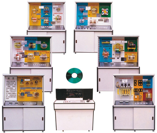 電機(jī)與變壓器示教陳列柜是根據(jù)大、中專院校,按《電力學(xué)》、《電力拖動(dòng)》、電機(jī)控制》、《電機(jī)修理》等教材設(shè)計(jì)一套電化設(shè)備,品種多,功能齊全,學(xué)生可根據(jù)教材需要觀察、分析,大大提高分析電機(jī)原理的能力,本陳列柜共分6柜及一臺(tái)電腦解說控制臺(tái)。有第一代和第二代兩種形式。