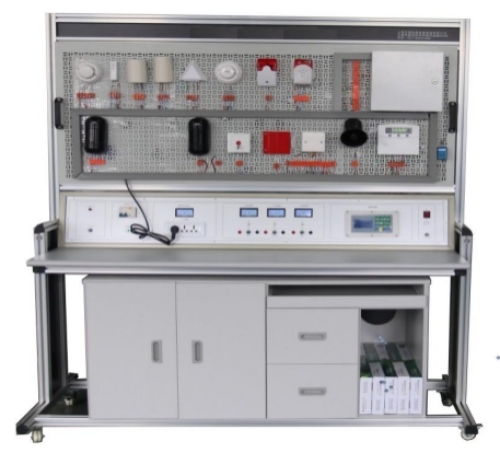 物聯(lián)網(wǎng)智能家居實訓(xùn)系統(tǒng)采用開放式和拆裝式結(jié)構(gòu)設(shè)計,采用鋁合金型材+網(wǎng)孔板結(jié)構(gòu),桌面為高級防火防水板,耐磨高密度板,結(jié)構(gòu)堅固,配有常用電源控制柜,能對各系統(tǒng)進行供電、接線、調(diào)試運行和維護實訓(xùn)和考核。設(shè)備有設(shè)備備柜,用于放置工具、存放資料等,實訓(xùn)桌還設(shè)有四個萬向輪和四個固定調(diào)節(jié)機構(gòu),便于移運和固定,有利于實訓(xùn)室布局。本系統(tǒng)全部元器件均采用實物,整個實訓(xùn)裝置主要由幕簾探測器、ZIGBEE主機、聲光報警器、Zigbee感煙探測器、然氣探測器、Zigbee燈光控制開關(guān)、Zigbee智能調(diào)光開關(guān)、APP監(jiān)控系統(tǒng)等組成。