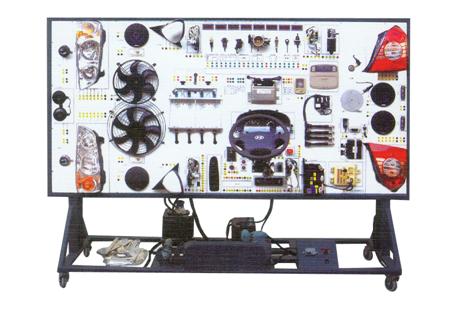 舒適系統(tǒng)、燈光系統(tǒng)、儀表系統(tǒng)、點火與噴射系統(tǒng)、起動系統(tǒng)、充電系統(tǒng)、發(fā)動機電控系統(tǒng)、喇叭系統(tǒng)、電動車窗系統(tǒng)、電控門鎖及后視鏡系統(tǒng)、雨刮系統(tǒng)、音響系統(tǒng)、故障設置系統(tǒng)、移動臺架等。