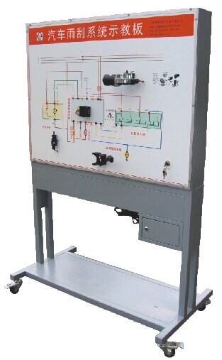 雨刮開關、雨刮控制繼電器、雨刮聯(lián)動機構、雨刮電機、噴水電機、噴水壺、噴水嘴、故障設置系統(tǒng)、電源、彩色原理與結構圖、控制面板、可移動臺架、使用說明書及實訓指導書等。