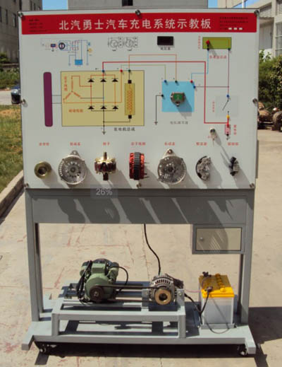 設(shè)備由勇士原車(chē)發(fā)電機(jī),蓄電池、電壓表、電流表、大功率負(fù)載、充電指示燈、空氣開(kāi)關(guān)、帶安全保險(xiǎn)的電源輸入接口、電源線、考核系統(tǒng)、電動(dòng)機(jī)及所有充電系統(tǒng)相關(guān)部件組成,在設(shè)備的中間部位,為完整的發(fā)電機(jī)分解部件。設(shè)備的下部為蓄電池、發(fā)電機(jī)、電動(dòng)機(jī)。上部為高清噴繪彩色原理圖面板、故障設(shè)置及故障排除系統(tǒng)、控制面板、可移動(dòng)臺(tái)架。配套設(shè)備使用說(shuō)明,實(shí)訓(xùn)指導(dǎo)資料、產(chǎn)品合格證、保修卡。