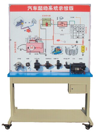 本產(chǎn)品選用汽車起動(dòng)系統(tǒng)實(shí)物,展示汽車起動(dòng)系統(tǒng)的結(jié)構(gòu)與原理;示教板上部還對(duì)起動(dòng)機(jī)進(jìn)行解剖,了解起動(dòng)機(jī)的基本構(gòu)造,面板上繪有完整的起動(dòng)系統(tǒng)的電路圖,設(shè)置檢測(cè)端子,可通過儀器儀表檢測(cè)各種信號(hào)參數(shù)如電壓、電阻、頻率等。本示教板功能齊全、操作方便、安全可靠。