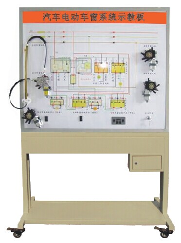 本產(chǎn)品選用桑塔納汽車電動車窗系統(tǒng)實物,展示汽車電動車窗系統(tǒng)的結(jié)構(gòu)與原理;面板上繪有完整的電動車窗系統(tǒng)的電路圖,設置有檢測端子,可通過儀器儀表檢測各種信號參數(shù)如電壓、電阻、頻率等。